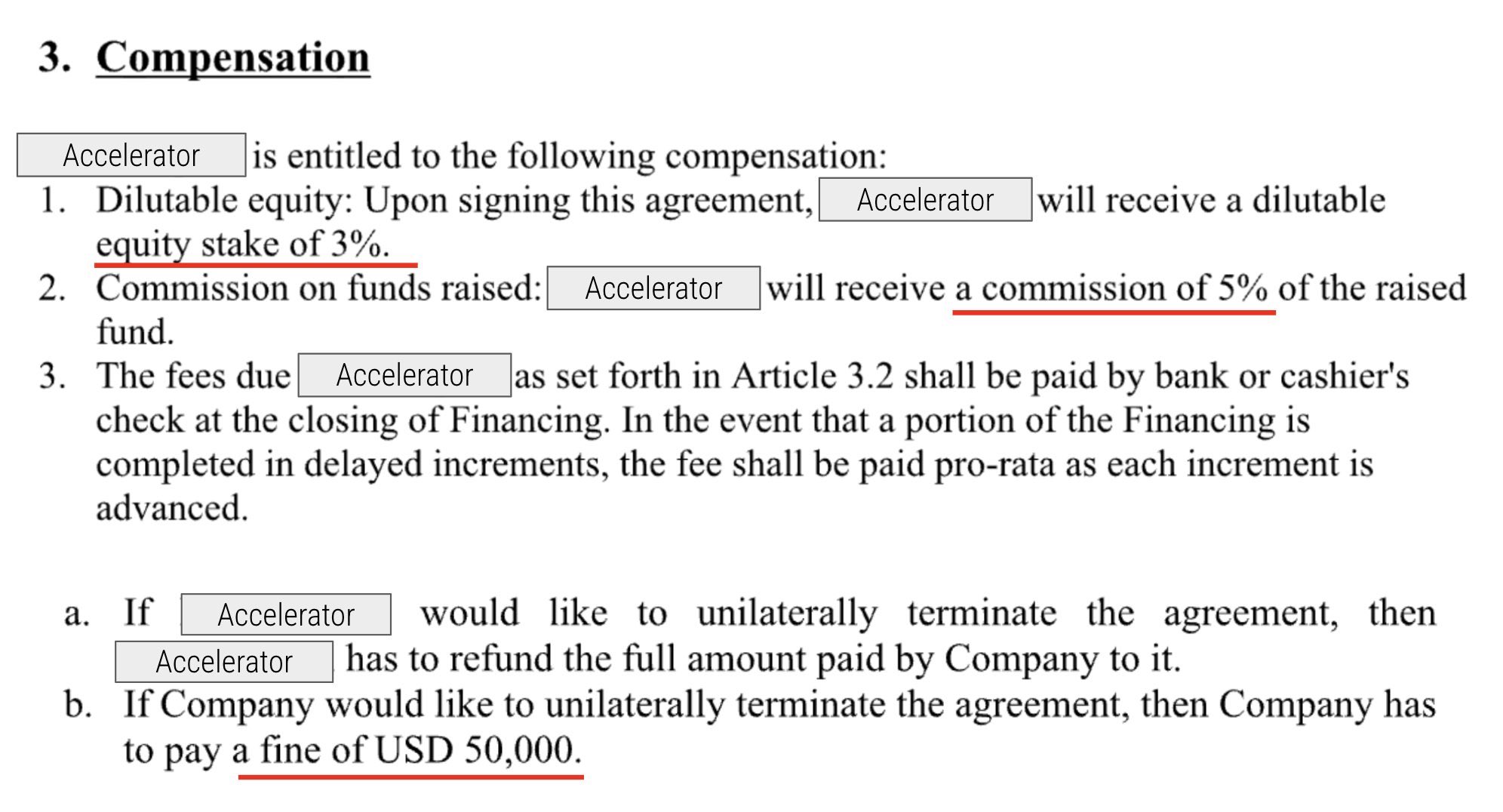- $50,000 penalty if the founder leaves their "program"