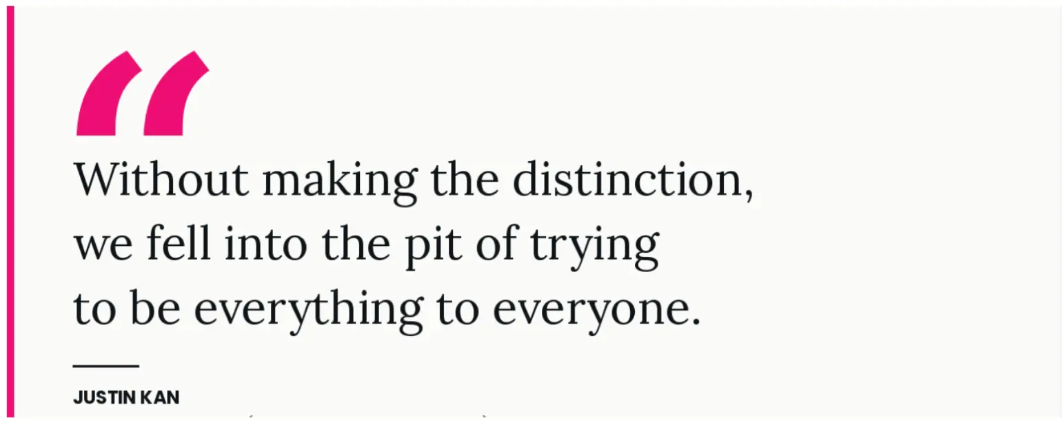 Justin Kan, who co-founded Justin.tv, which became Twitch and sold for $970 million, described a version of this in his own post-mortem after burning through $75 million at Atrium, his legal tech startup. His team kept changing things without ever resolving the underlying question: were they building for lawyers or for startup clients buying legal services?